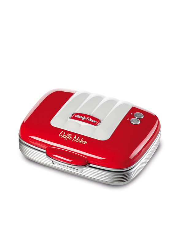 وافل ساز قرمز با بشقاب های برقی نچسب، با طراحی منحصر به فرد American Diners دهه 1950. بیایید با Party Time Ariete جشن بگیریم!وافل های خوشمزه با شکلات، وافل های تابستانی با میوه های تازه و خامه زده شده، وافل های بدون تخم مرغ خوش طعم با ماهی سالمون و پنیر خامه ای. هر طور که دوست دارید، وافل ها برای هر زمانی از روز عالی هستند: صبحانه، ناهار، میان وعده بعد از ظهر یا شام. با وافل ساز Ariete's Party Time می توانید وافل های مورد علاقه خود را تنها در چند دقیقه در خانه درست کنید، به لطف صفحات نچسب که مخصوص دستیابی به بافت کلاسیک وافل ها هستند. این وافلساز طراحی بینظیر خط Ariete's Party Time را دارد: خطوط صاف و رنگهای هنر پاپ که آمریکای دهه 50 و روزهای شاد آن را به یاد میآورد. کل مجموعه Party Time را کشف کنید: آشپزخانه خود را به یک غذاخوری معمولی آمریکایی تبدیل کنید و از تهیه پاپ کورن، کرپ، وافل و نخ آب نبات لذت ببرید. سرگرمی تضمین شده است