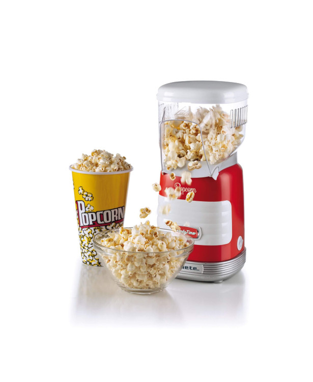 دستگاه قرمز پاپ کورن با طراحی منحصر به فرد غذاخوری آمریکایی دهه 1950. پخت و پز در هوای گرم بدون استفاده از روغن یا چربی. 60 گرم ذرت را در کمتر از 2 دقیقه آماده کنید. بیایید با Party Time Ariete جشن بگیریم!
