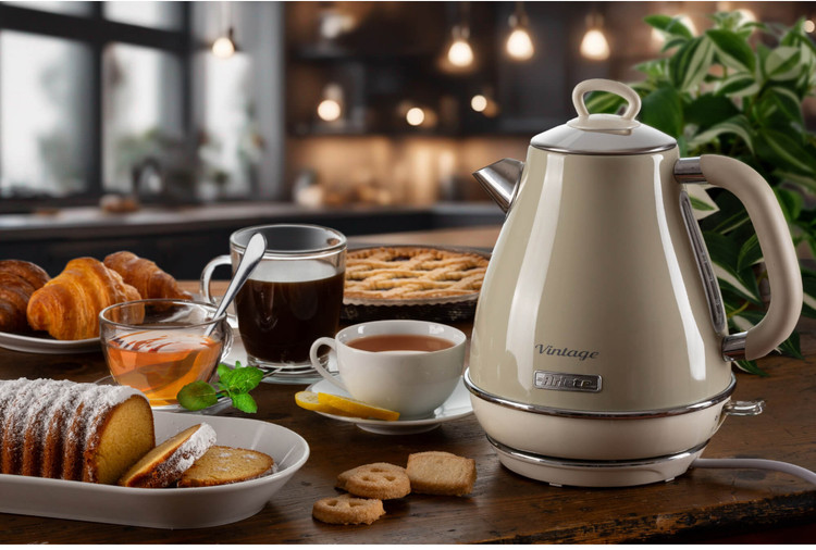 کتری طراحی شده است که آشپزخانه را با اشکال منحصر به فرد و رنگ های پاستلی خود تزئین می کند. پایه چرخشی 360 درجه امکان قرار دادن آسان کتری را بر روی تمام سطوح آشپزخانه فراهم می کند. کتری برقی Vintage دارای ظرفیت 1.7 لیتر و قدرت 2000 وات است که باعث می شود آب در چند لحظه بجوشد، بنابراین می توانید به سرعت عرقیات، چای و نوشیدنی های گیاهی تهیه کنید. دسته سرد و دیوارهای فولادی ضد زنگ از شما در برابر سوختگی تصادفی محافظت می کند. کتری با فشار ساده یک دکمه روشن می شود و هنگامی که مایع به نقطه جوش می رسد به طور خودکار خاموش می شود (برای ایمنی، زمانی که خالی است نیز خاموش می شود). کتری Vintage برای جوشاندن سریع آب، عنصر کلیدی غذاهای ایتالیایی، و همچنین برای تهیه چای معطر و عرقیات خوشمزه مانند دمنوش های گیاهی، بابونه و نوشیدنی های جو مناسب است. Ariete محصولات نمادین و کاربردی تولید می کند: Vintage Line طراحی ایتالیایی را با سهولت استفاده ترکیب می کند که مشخصه Ariete است، شرکت ایتالیایی که در محصولات صبحانه پیشرو است.