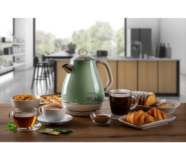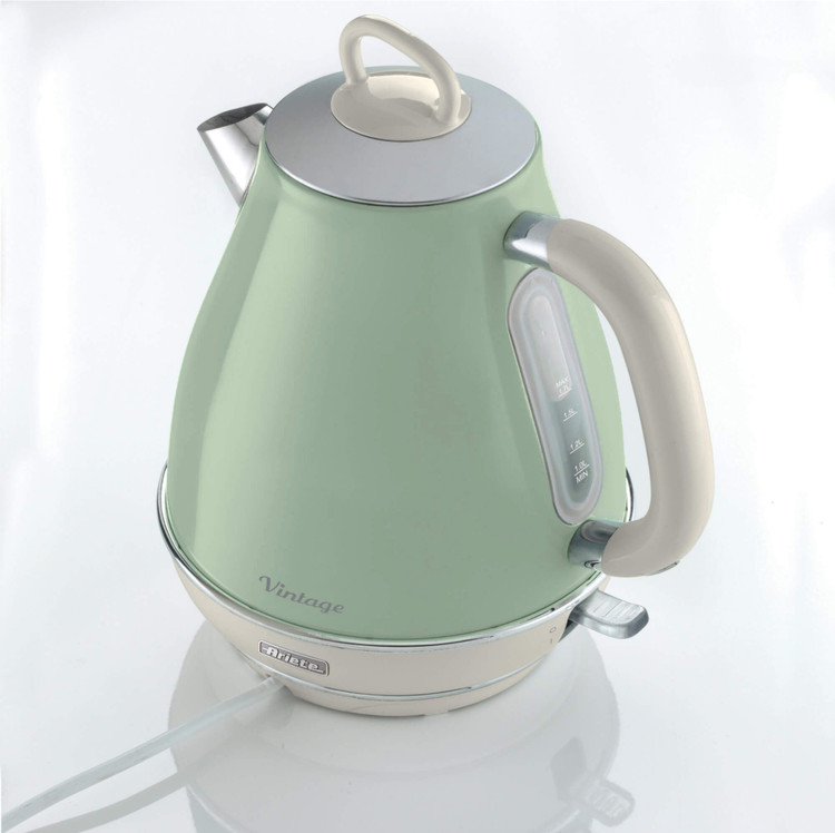 کتری طراحی شده است که آشپزخانه را با اشکال منحصر به فرد و رنگ های پاستلی خود تزئین می کند. پایه چرخشی 360 درجه امکان قرار دادن آسان کتری را بر روی تمام سطوح آشپزخانه فراهم می کند. کتری برقی Vintage دارای ظرفیت 1.7 لیتر و قدرت 2000 وات است که باعث می شود آب در چند لحظه بجوشد، بنابراین می توانید به سرعت عرقیات، چای و نوشیدنی های گیاهی تهیه کنید. دسته سرد و دیوارهای فولادی ضد زنگ از شما در برابر سوختگی تصادفی محافظت می کند. کتری با فشار ساده یک دکمه روشن می شود و هنگامی که مایع به نقطه جوش می رسد به طور خودکار خاموش می شود (برای ایمنی، زمانی که خالی است نیز خاموش می شود). کتری Vintage برای جوشاندن سریع آب، عنصر کلیدی غذاهای ایتالیایی، و همچنین برای تهیه چای معطر و عرقیات خوشمزه مانند دمنوش های گیاهی، بابونه و نوشیدنی های جو مناسب است. Ariete محصولات نمادین و کاربردی تولید می کند: Vintage Line طراحی ایتالیایی را با سهولت استفاده ترکیب می کند که مشخصه Ariete است، شرکت ایتالیایی که در محصولات صبحانه پیشرو است.