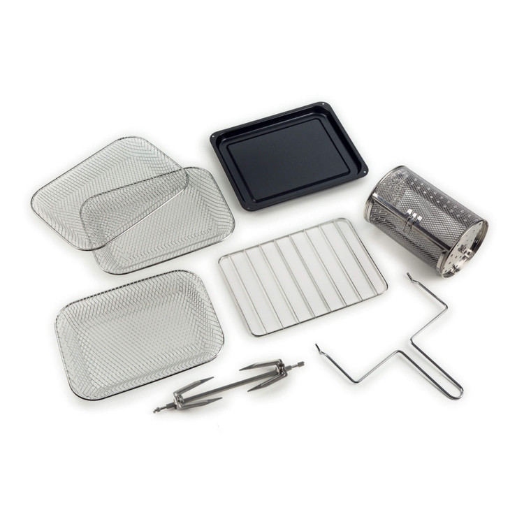 | لوازم جانبی | 3 سبد سوراخ شده از جنس استنلس استیل، سبد چرخان استیل ضد زنگ، گریل استیل ضد زنگ، ست تف فولادی ضد زنگ برای برشته کردن و قطره چکان |