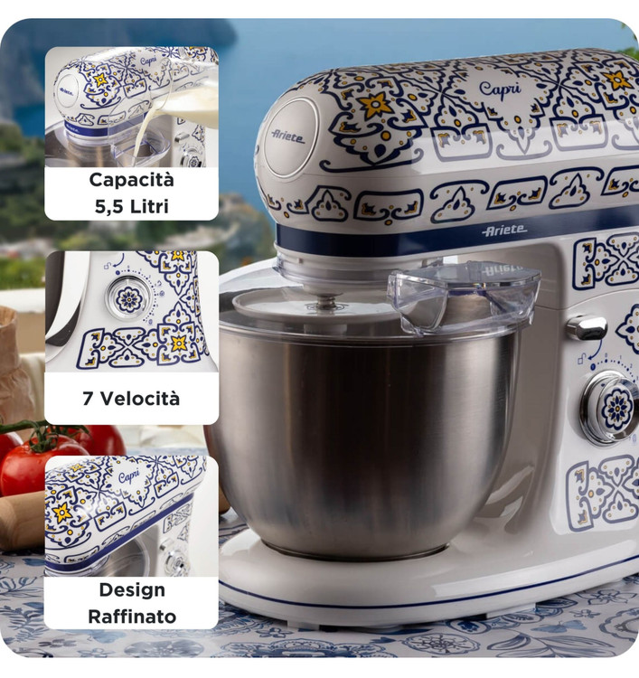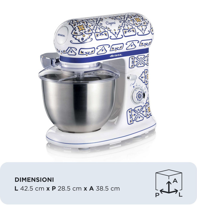 همزن سیارهای کاپری، تهیهی دستورهای غذایی پیچیدهتری را که میخواهید در خانه درست کنید، مانند نان، پاستای خانگی، و همچنین پیتزا، محصولات تخمیری و کیکهای مخصوص که به زمان آمادهسازی طولانی نیاز دارند، آسانتر میکند. شما دستور غذا را انتخاب میکنید، همزن سیارهای Ariete همه کارها را برای شما انجام میدهد! این همزن سیارهای با فنجان استیل ضد زنگ ۵.۵ لیتری خود، به لطف موتور ۲۴۰۰ واتی خود، به شما امکان میدهد مقادیر زیادی از مواد را با بهترین عملکرد مخلوط کنید. همچنین میتوانید سرعت را از بین ۷ سرعت موجود ، مطابق با دستور غذایی که میخواهید تهیه کنید، تنظیم کنید.
