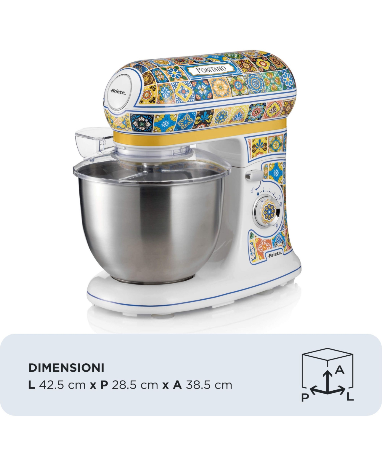همزن سیارهای Positano تهیهی دستورهای غذایی پیچیدهتری را که میخواهید در خانه درست کنید، مانند نان، پاستای خانگی، و همچنین پیتزا، محصولات تخمیری و کیکهای مخصوص که به زمان آمادهسازی طولانی نیاز دارند، آسانتر میکند. شما دستور غذا را انتخاب میکنید، همزن سیارهای Ariete همه کارها را برای شما انجام میدهد! این همزن سیارهای با فنجان استیل ضد زنگ ۵.۵ لیتری خود، به لطف موتور ۲۴۰۰ واتی خود، به شما امکان میدهد مقادیر زیادی از مواد را با بهترین عملکرد مخلوط کنید. همچنین میتوانید سرعت را از بین ۷ سرعت موجود ، مطابق با دستور غذایی که میخواهید تهیه کنید، تنظیم کنید