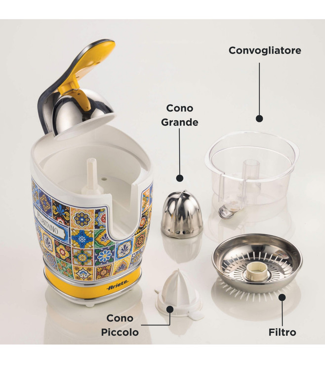 دو مخروط برای میوههای بزرگ و کوچک ارائه میشود: مخروط بزرگ از جنس استیل ضد زنگ برای پرتقال و گریپ فروت ایدهآل است و مخروط کوچک با یک پین میتواند برای نگهداری راحت میوههای کوچکتر مانند لیمو و لیموترش استفاده شود. آبمیوهگیری حرفهای با اهرم فشاری به راحتی میوه را فشار میدهد و آبگیری حرفهای را تضمین میکند. دهانه چکه از جنس استیل ضد زنگ از هدر رفتن آبمیوه جلوگیری میکند و تمیز کردن بیعیب و نقص سطوح را تضمین میکند. یک آب پرتقال برای صبحانه برای تأمین ویتامین C، مواد معدنی و انرژی عالی است