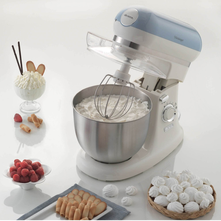 میکسر وینتیج Ariete 1588 یک میکسر سیاره ای با طراحی ظریف و پیچیده است که فناوری و عملکرد را هم برای وعده های غذایی روزانه و هم برای محصولات شیرینی پزی فانتزی ترکیب می کند. موتوری که با حداکثر توان به 2400 وات می رسد، 7 سرعت و عملکرد پالس به آن اجازه می دهد حتی سفت ترین و درشت ترین خمیرها را نیز کار کند. کاسه بزرگ 5.5 لیتری استیل ضد زنگ و 3 همزن ارائه شده، قلاب خمیر برای ورز دادن، قلاب قلبی شکل برای مخلوط کردن و سیمی برای ضرب و شتم، طیف وسیعی از خلاقیت ها را امکان پذیر می کند. پایه های ضد لغزش و بالانس به لطف درب محافظ پاشش به مخلوط کن اجازه می دهد تا با سرعت بالا و به روشی مطمئن و پایدار و بدون ایجاد آشفتگی کار کند. Ariete محصولات نمادین و کاربردی تولید می کند: خط Vintage طراحی ایتالیایی را با سهولت استفاده ترکیب می کند که مشخصه Ariete، تولید کننده پیشرو در محصولات آماده سازی غذا است.